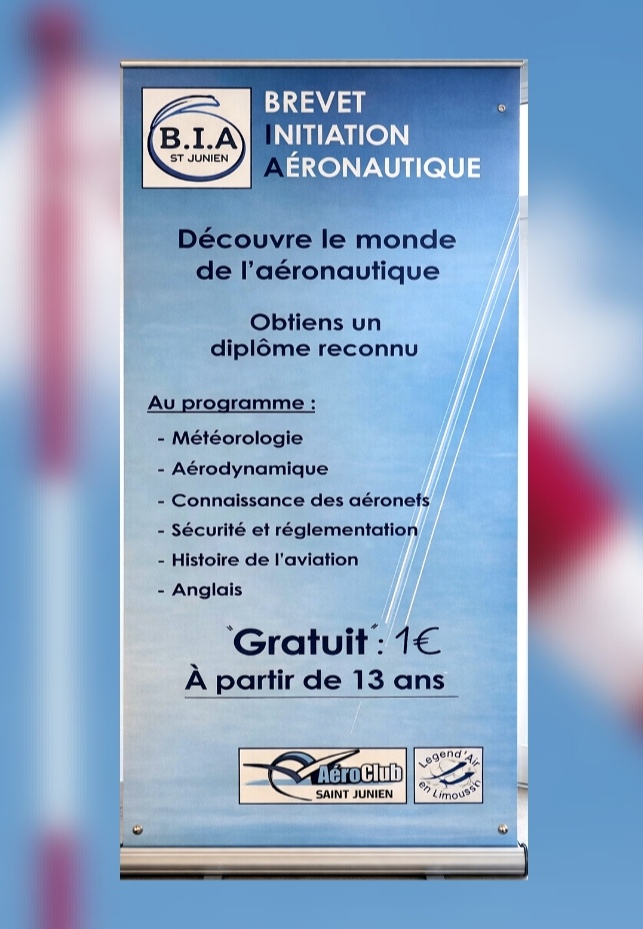 Pour nos jeunes qui s’intéressent à l’aviation et envisagent une carrière dans l’aéronautique, une formation au BIA, Brevet Initiation Aéronautique est possible à l’aéroclub de Saint-Junien et ce à partir de 13 ans.