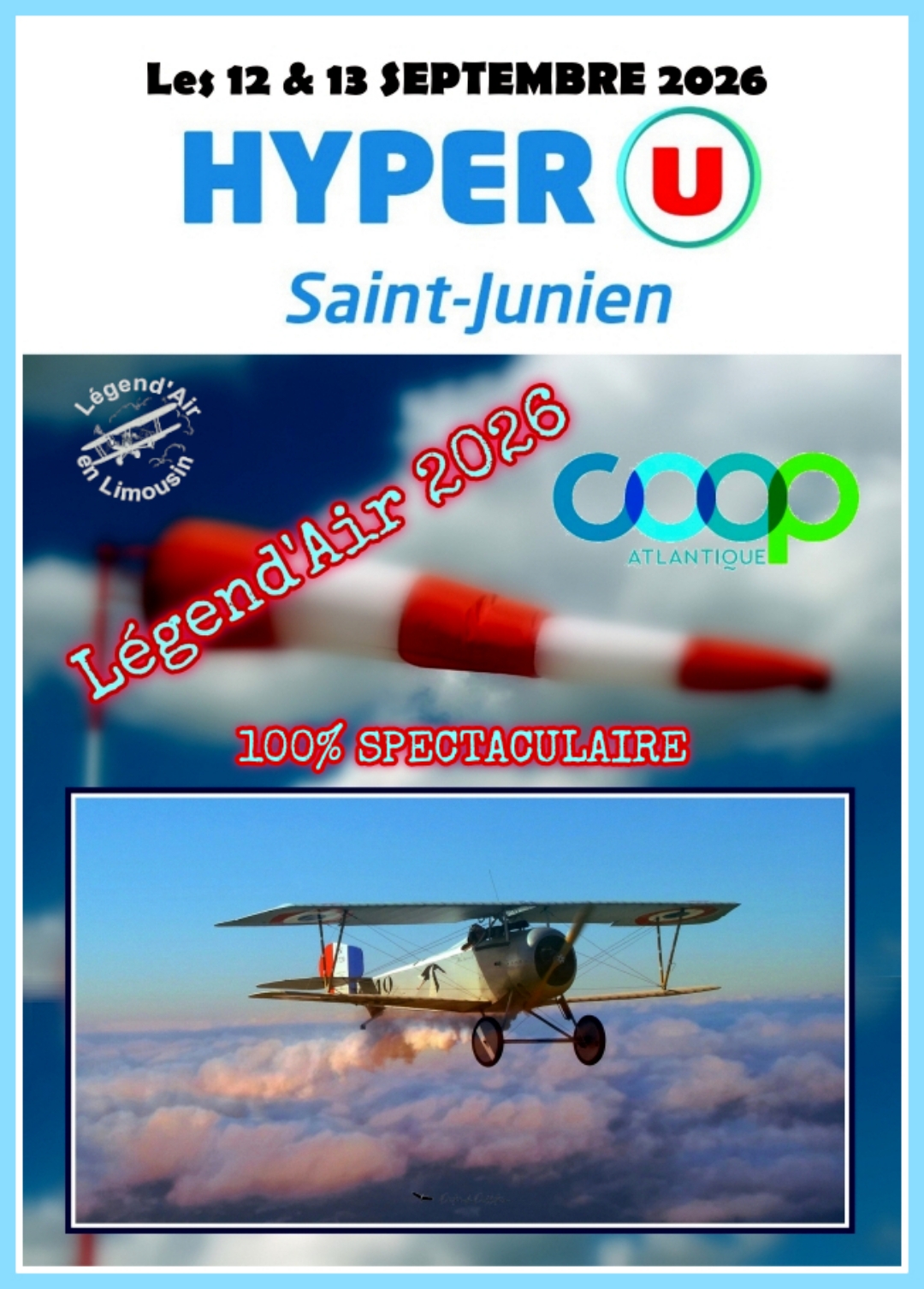 Notre exposition Légend’Air s’est déplacée de quelques centaines de mètres pour atterrir chez Hyper U de Saint Junien. Notre fidèle partenaire nous a ouvert grand ses portes et vous pourrez venir admirer nos magnifiques photos tout en faisant vos achats chez Hyper U Saint Junien – Coop Atlantique.